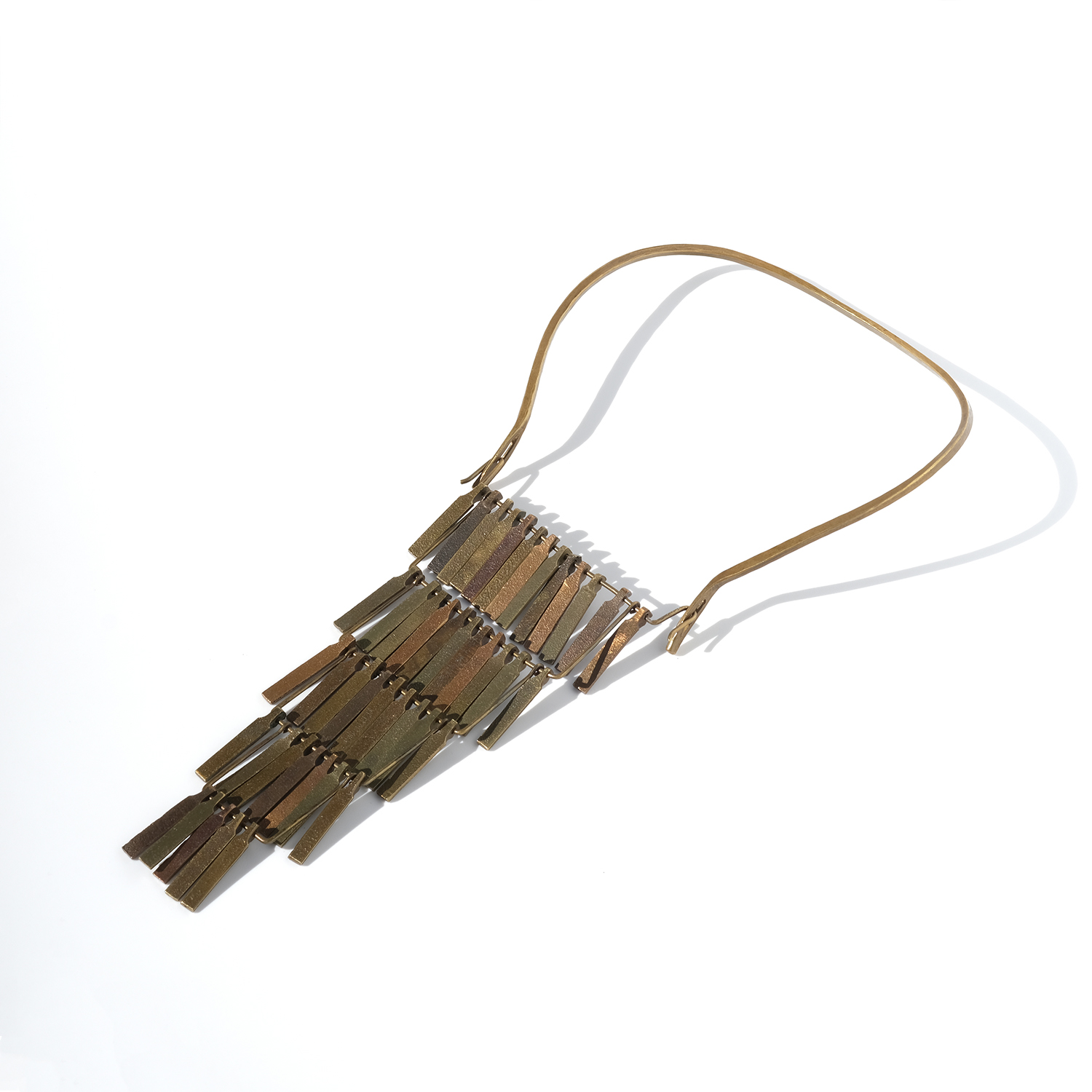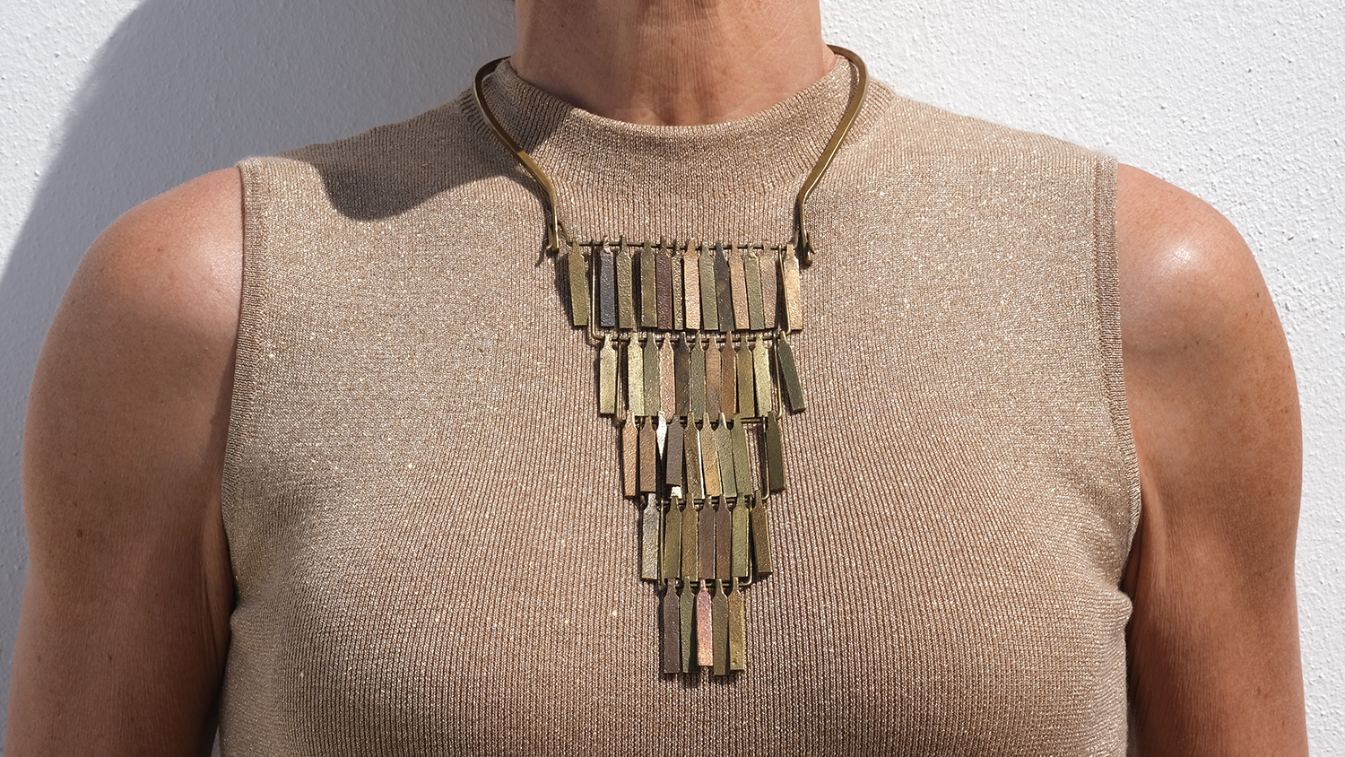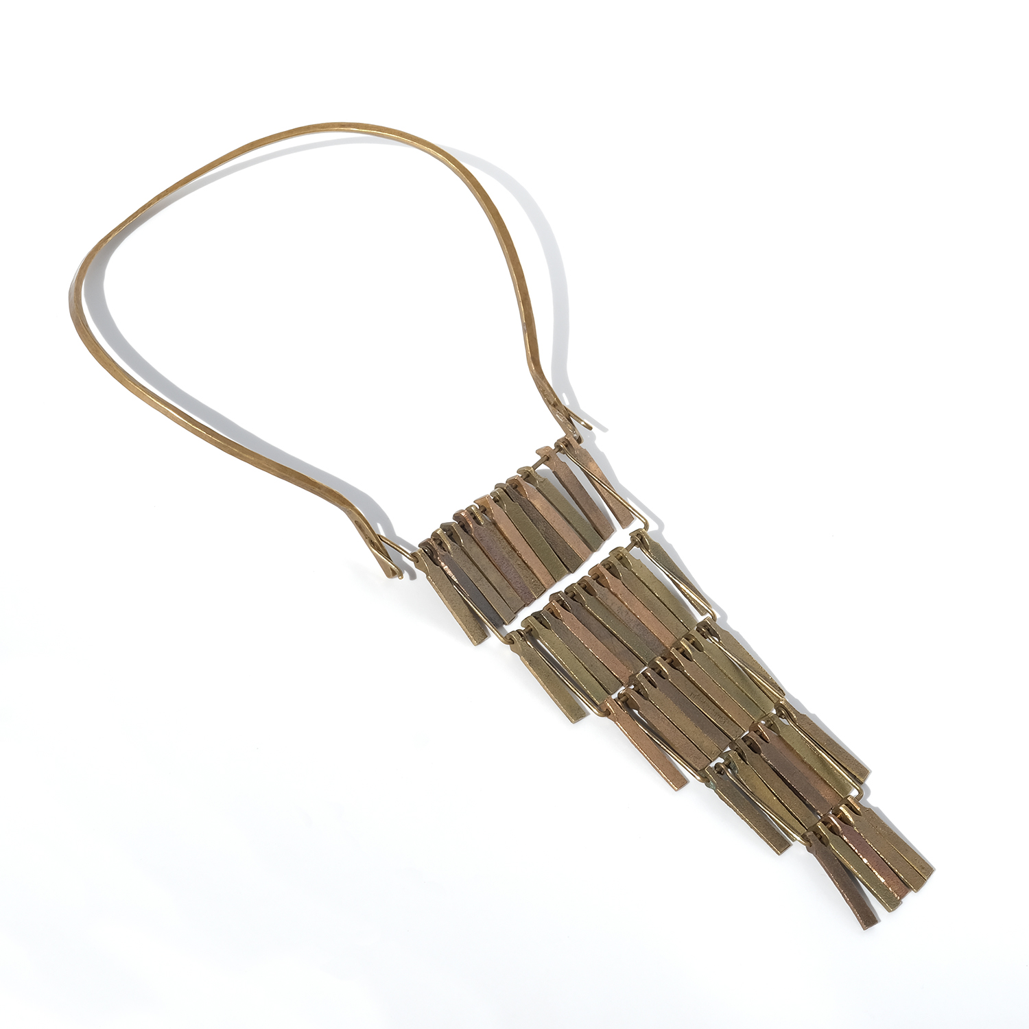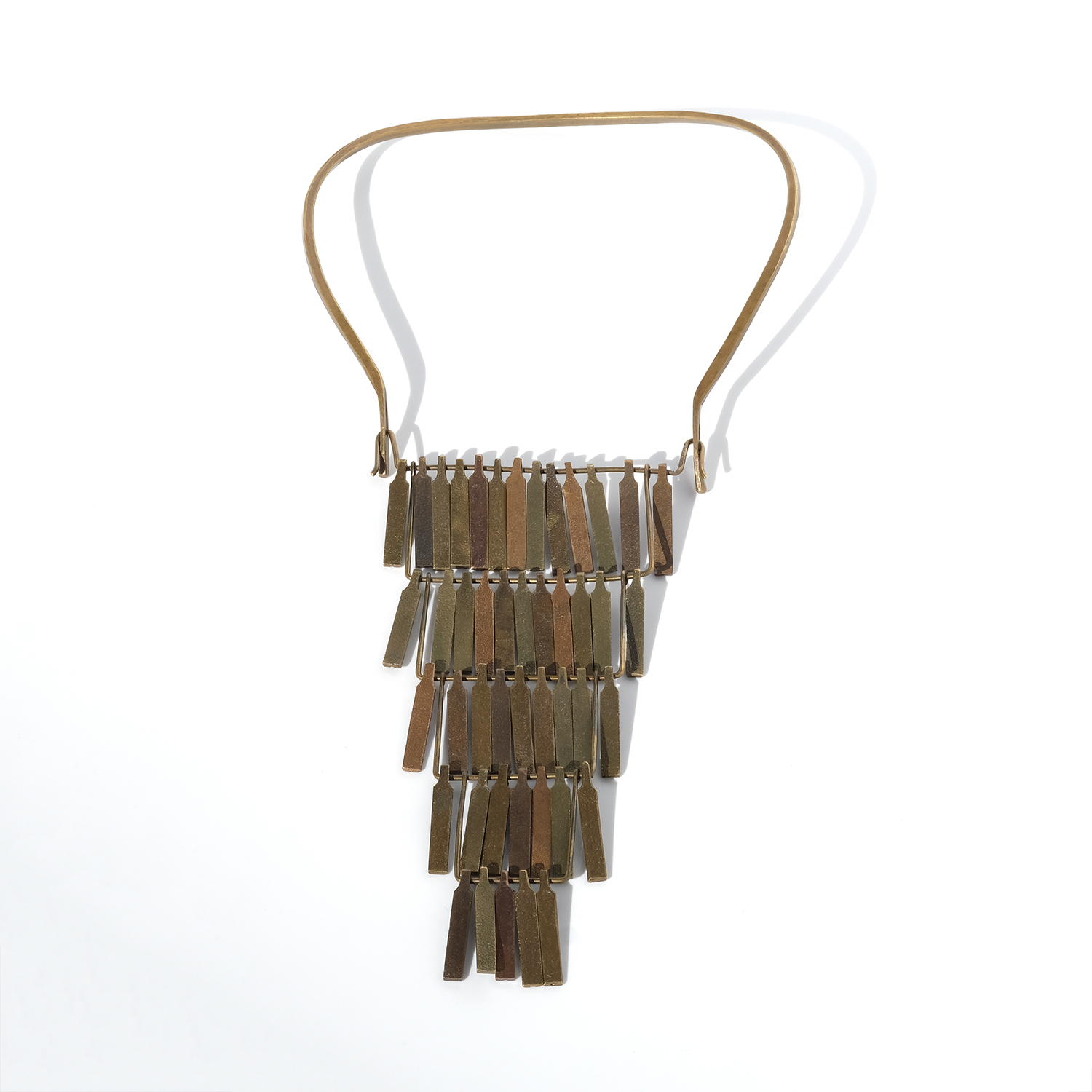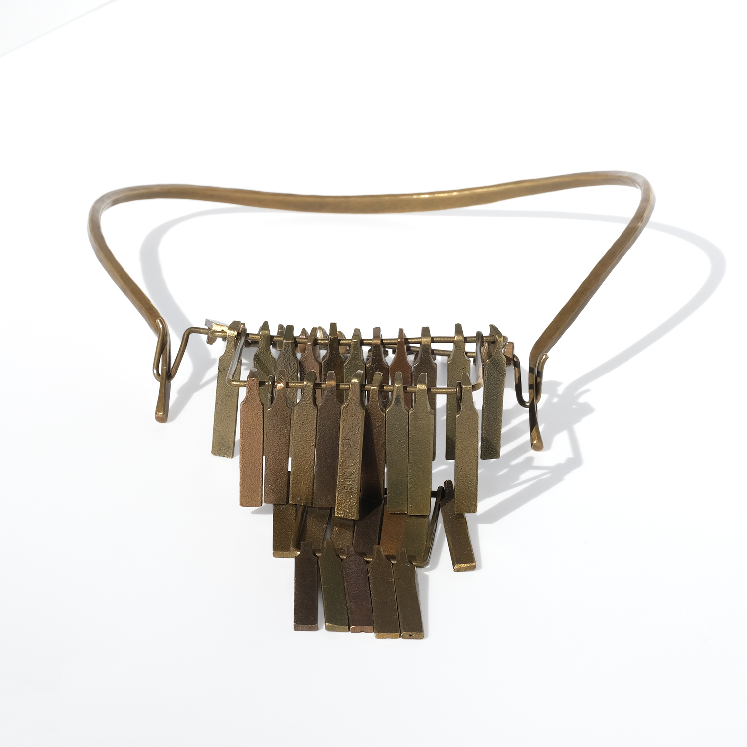 The piece carries a distinct 1970s spirit with a quiet, tribal-inspired character. Worn, it frames the neck and collarbone with presence, encouraging a natural, upright posture—confident, grounded, and quietly striking.