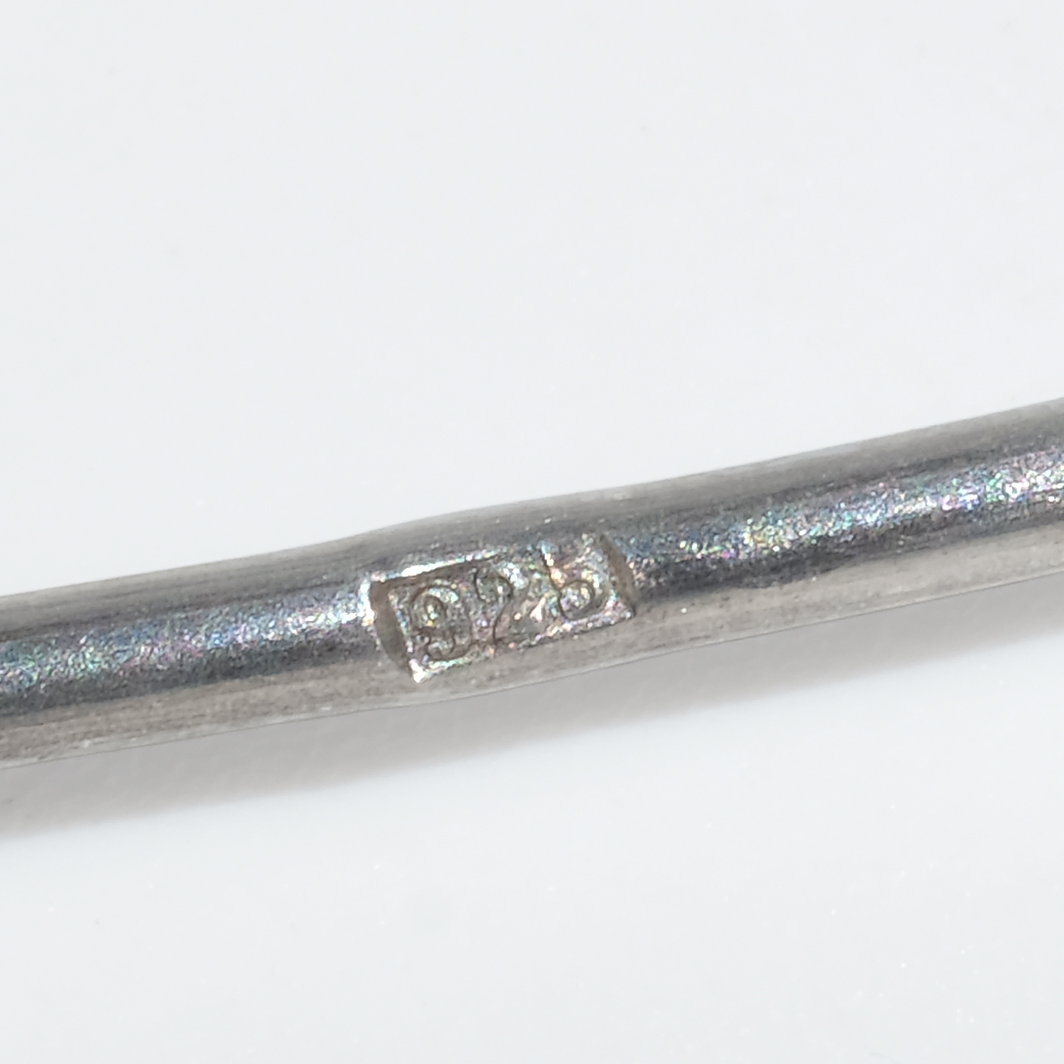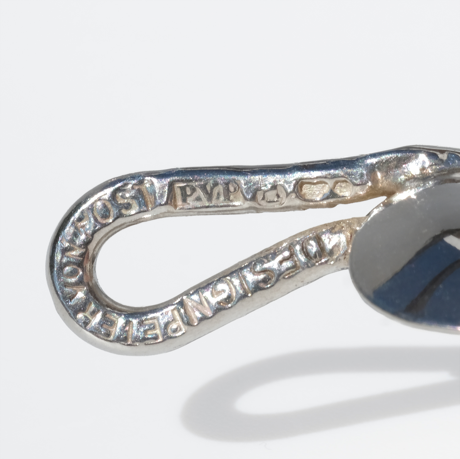 The sterling silver neck ring is slender and smooth, forming a clean circle that frames the pendant without distraction. It is a later addition and not by von Post. It sits lightly around the neck, with the pendant falling lower on the chest.